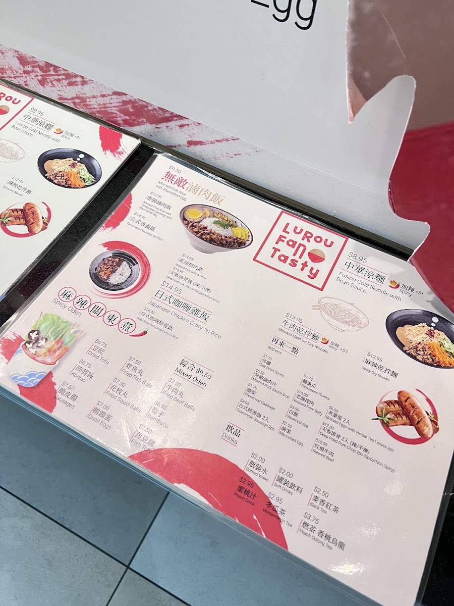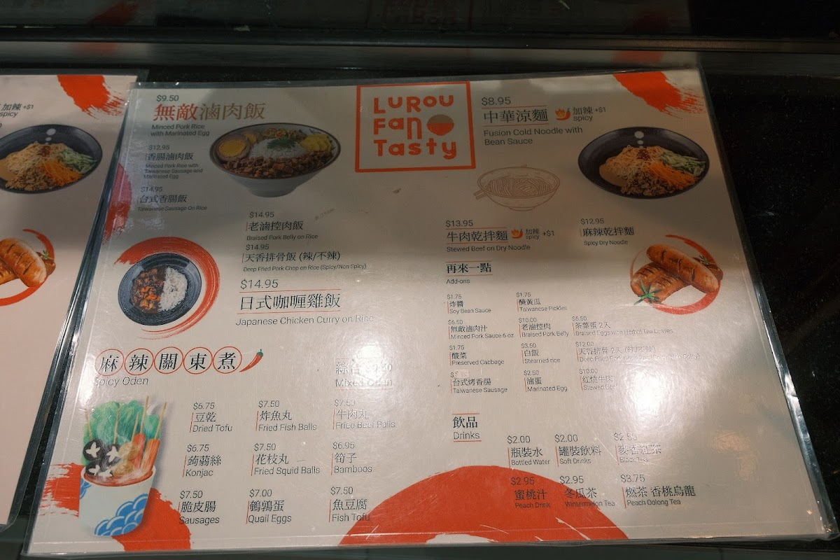The menu at Luroufan Tasty features a variety of Asian dishes centered around Taiwanese cuisine, with an emphasis on hearty rice and noodle options as well as traditional snacks. Visitors can select from several categories that include savory main dishes, street-style bites, and beverages.